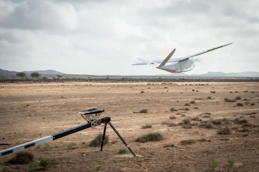 Su capacidad de despliegue en tan solo 8 minutos. Esto es fundamental en situaciones donde la respuesta rápida es crítica. Su método de despegue mediante catapulta y aterrizaje de tipo “barriga” lo hacen adaptable a una amplia variedad de terrenos, eliminando la necesidad de pistas de aterrizaje especializadas. Esta flexibilidad operativa lo convierte en una solución ideal para entornos remotos o de difícil acceso.