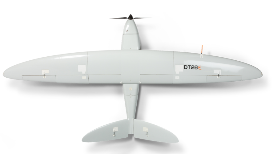 El DT26 mantiene un peso manejable de 15 kg (carga útil incluida). Sus dimensiones, con una envergadura de 3.3 metros y una longitud de 1.6 metros, le otorgan la estabilidad necesaria para operar en diversas condiciones climáticas. La elección de materiales como materiales compuestos (fibra de vidrio, carbono, kevlar) y espuma EPP no solo garantiza su ligereza, sino también una durabilidad excepcional y resistencia a los impactos.