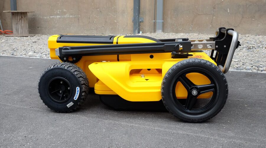 Construido para resistir las condiciones más duras de la obra. Su diseño modular y su construcción robusta lo protegen del polvo, el agua y los impactos. Ruedas grandes y manillar ajustable facilitan su transporte y maniobrabilidad en terrenos irregulares.