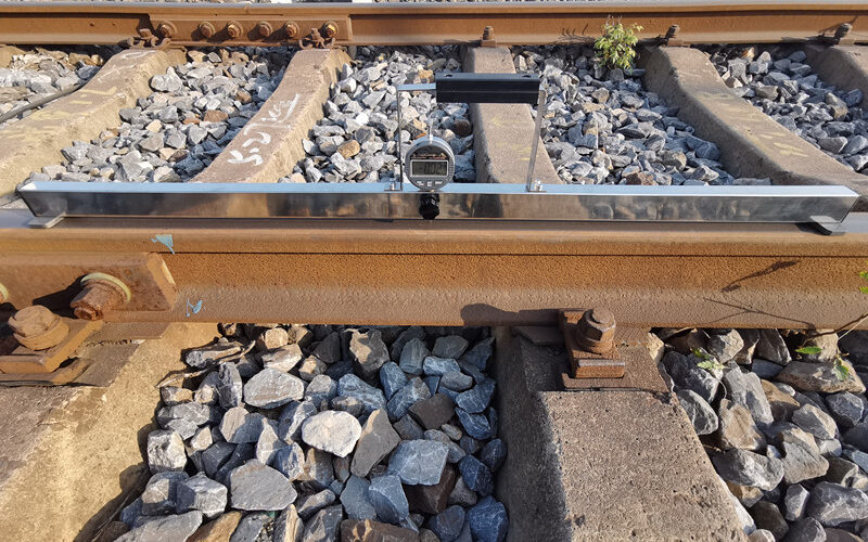 Regla digital que permite medir la rectitud de la vía con pantalla LCD.